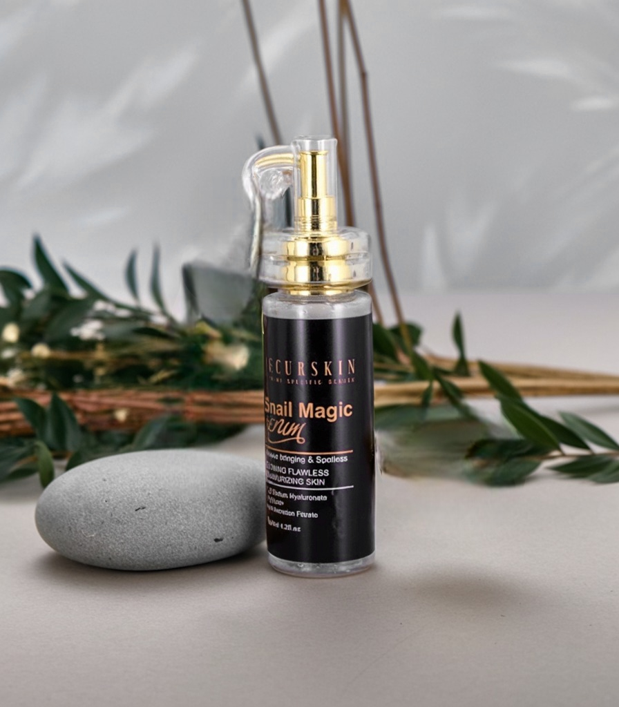 Snail Magic Serum possess anti-aging characteristics, potentially diminishing the visibility of fine lines & wrinkles, and fostering a more youthful and rejuvenated complexion. It also enhances skin’s natural elasticity and firmness by intensly hydrating skin, blemishes clearing.